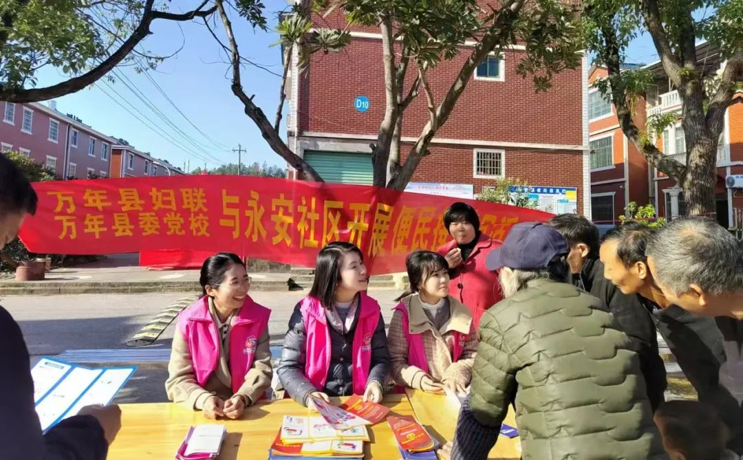 11月27日,万年县妇联联合县委党校、江西赣都律师事务所在陈营镇永安社区开展结对共建便民接待日活动,接待群众政策咨询40余人次,发放反家庭暴力法、妇女权益保障法等宣传单百余份。