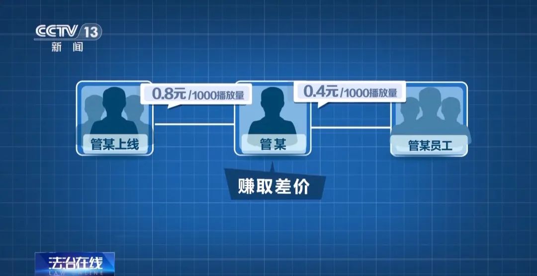 类似这样的短视频账号并不少见,很多家网络平台上都有。在另一个网络平台上,一个名为“咖喱看点”的账号也发布过上百条类似的低俗内容。仔细分析其中一段视频可以发现,视频标注了声音来源为一位李女士,虽然画面给这名女子进行了模糊化处理,但通过观察,仍然可以辨别出画面中的女子与所谓的声音来源,声画并不同步。与这条视频同标题的另一视频,两个视频中,李女士的声音一样、视频内容一样、视频节奏也一样,只有画面中两个“李女士”和“丁某”的样子不同,如此看来,这只是发布者移花接木的剪辑操作。结合视频的全部内容来看,视频内容的真实性存疑。这些账号为什么会发布这样的低俗内容呢?在视频的结尾,出现了一些端倪,画面出现了一张表格,上面写着的信息注明了编号、城市、认识渠道以及从事行业,似乎正是这个“丁某”交往过的女性名单。其中,认识渠道一栏中,多次出现了一款社交软件的名字。在之前“女子落水”的视频中,被“采访”的王先生也说,自己和落水女子是在这款社交软件上认识的。不久前,河南郑州警方侦破的一起特大网络水军造谣引流案,揭开了其中的秘密。郑州市公安局网监支队民警介绍,我们在工作中发现有很多自媒体账号在频繁发布涉及郑州的一些低俗信息,包括“外卖员多次出轨”“保安出轨”之类的。本是个人生活作风问题,为什么会被人发在网上?而且事实情况果真如此吗?民警介绍,在取证获得了大量视频素材之后,进行比较发现,他们会把同一个脚本配上不同的视频内容,来进行发布。标注的地点一般都是一些网红热门城市,这就不得不让人怀疑了。同一时期、同一个事发生在全国这么多地方,让人对视频的真实性产生怀疑。这个事情网上发布关注度非常高,但是好像当地人都没有听说过,民警再去请属地核实,他们也没有发现此类情况,所以感觉可能是一个虚假信息。经过对此类视频的大量搜集和比对,民警发现了这背后隐藏的玄机。原来视频大部分都为“标题党”,让人进去一眼就被内容吸引看下去,一般都是在视频的中间一小部分的时间,有意无意展现出来App。经警方查证,在这些极其“标题党”的视频中,每一条都提及了这一软件:有的视频是通过第一人称来表述,像传授经验似的,说自己是在这款软件上约见女性的;有的视频是在条幅上遮遮掩掩出现软件名字;有的视频则是以公布记录、表格等方式,写明男子结交多名女子的渠道和方式,其中,这款社交软件占据了相当多的篇幅。根据相关证据,警方分析认为,网上突然出现的这些造谣信息,真实目的极有可能是为了推广这款软件。通过潜移默化的方式,让大家觉得可以通过“他趣”App去找异性发生关系。民警随后查到了大量发布这些虚假视频的网民的社交账号,又对这些社交账号实名筛查,再归类分析,发现这些账号都是以公司或者团队的形式来进行视频制作的。在掌握确凿证据后,郑州警方对多个团伙同步展开抓捕。据警方了解,犯罪嫌疑人管某是这家传媒公司的老板,他招募了多名员工参与制作这些造谣推广视频。管某说,他的“上家”会提供这些视频的剪辑模板,其中包含文案和标题位置等,管某等人对视频里的文字无需修改,只要把视频里的画面替换一下,就算制作完成了。民警了解到,为了维护账号,除了发布这些造谣推广的视频之外,管某等人也会在账号内发布一些搞笑、萌宠等其他类型视频。郑州市公安局航空港分局案件侦办大队民警介绍,发其他这些视频的目的就是为了养这个传播号。由于这些造谣推广视频的画面很多是管某等人从网上自行下载的,所以在视频里,他们往往会标注上“网友投稿 侵权请联系”等相关字样。民警表示,这些人自己拍摄素材成本非常高,如果从网上去下载,成本是非常低的。他认为只要打上几句话,起到一个免责的作用,同时这句话让人看起来更真,是真实的投稿、真实的爆料,通过这种模式让大家更容易信以为真。警方了解到,管某等人会将审核通过的这些造谣视频发布在多个视频平台上进行推广,管某与其上线以每1000播放量0.8元的价格达成协议,之后又以每1000播放量0.4元的价格给员工结算提成,自己作为中间商赚取差价。他们不会做特别爆款的视频,因为一旦做成爆款视频的话,就会直接把背后的公司推到大众面前,这样对他们来说也是一个有风险的事。他们的目的就是让视频在短期内小火一下,让“他趣”App的下载量有所增加。经警方查证,管某公司掌管的视频账号有165个,在半年左右的时间内,这个犯罪团伙所编造传播的造谣视频数量高达140万条,视频播放量更是高达2.5亿余次。管某是属于这个链条的最底层的代理,该公司的成立目的就是制作和发布虚假新闻素材。随着调查的深入,警方发现这伙人层级复杂,像管某这种成立了专门的传媒公司或团队的,就有十余个,涉及人员众多。那这款软件公司到底知不知情呢?警方经过调查,目前已经抓获一名“上线”,是这家软件公司的管理人员。民警介绍,这些传媒工作室往上,就像一个金字塔一样,有中层来进行统一分发任务指令,中层再往上又有高层给中层发放指令和任务。侦查发现,我们发现这些视频的资金都是在“他趣”公司任职的员工黄某海统一发放的。经警方调查,黄某海是负责这一造谣推广项目的核心人员之一。在本案中:黄某海等人以每1000播放