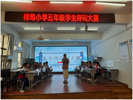 11月21日,梓埠镇中心小学于学校多媒体教室举办了诗词大赛活动,旨在弘扬中华文化,营造诗香校园。本次活动按年级依次开展,比赛涵盖基础必答(含成语填字题、诗词填字题、诗词对句题)、限时抢答、风险题挑战赛三个环节,最终各年级积分最高的班级队伍以及个人得分前六名的选手获胜。