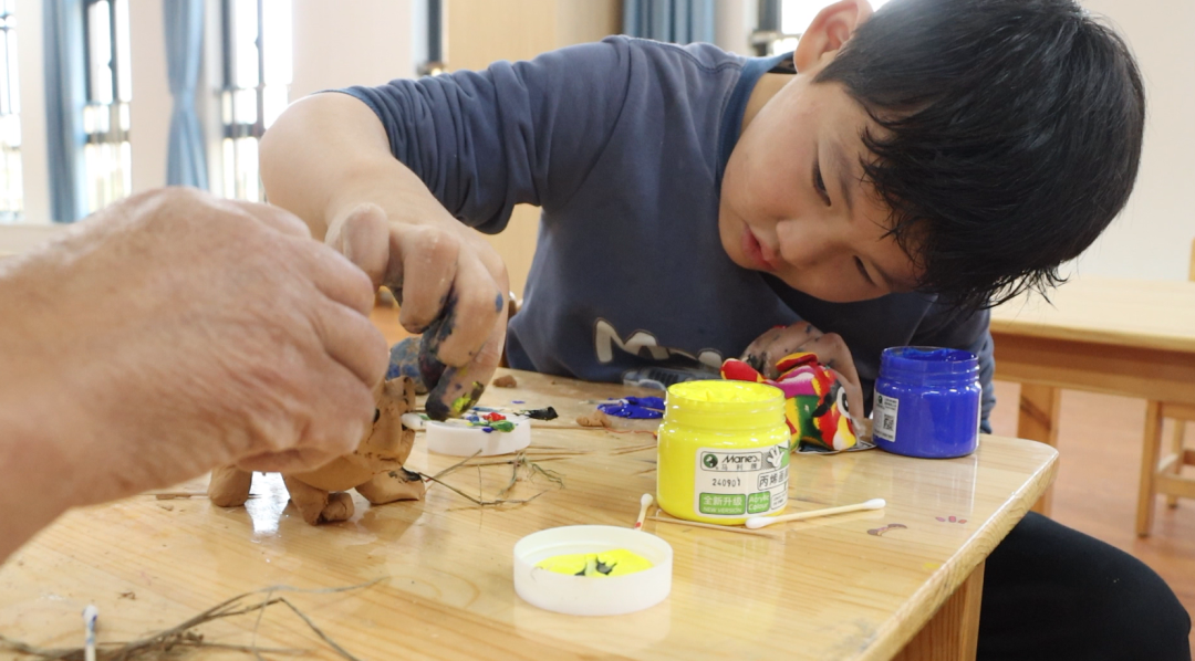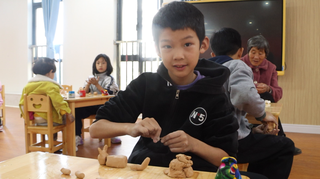 课堂上,公益课老师亲身示范,并通过图片、视频直观地向孩子们展示了彩泥制作的具体流程和方法技巧。