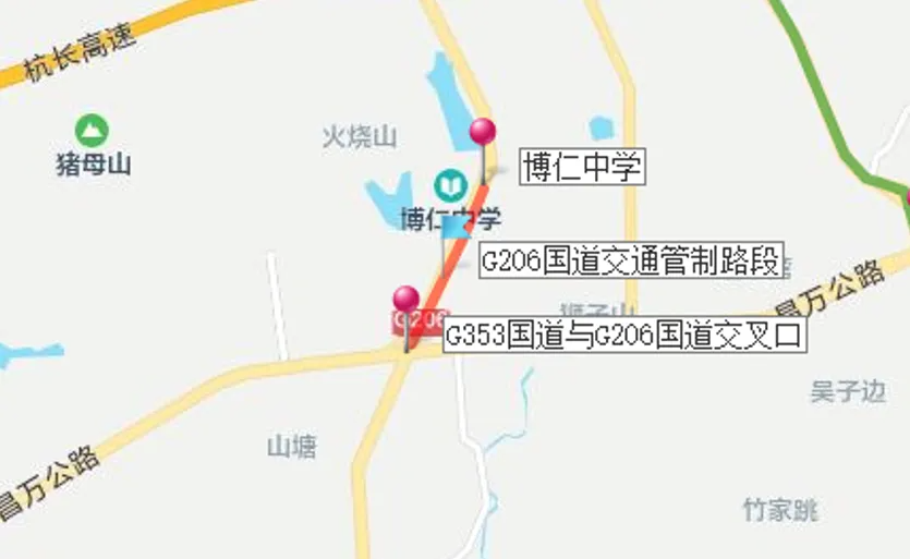 2.由G206威汕线K1580+900交叉路口右转到G353宁福线 K588+400交叉路口处沿S207蛟洵线至乐平景德镇方向行驶。