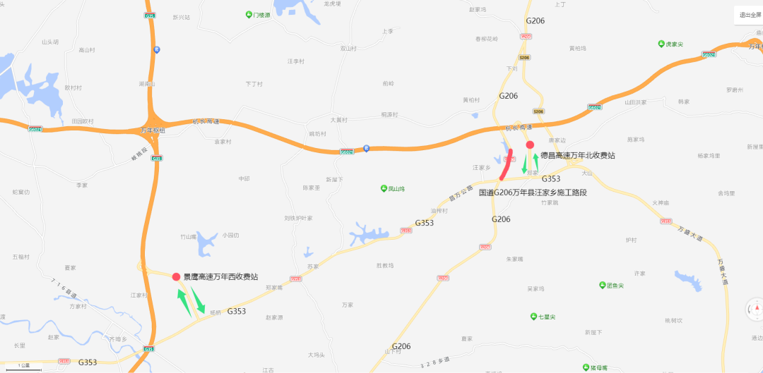 1.由景鹰高速万年西收费站上高速,至景鹰高速乐平收费站下高速公路。
